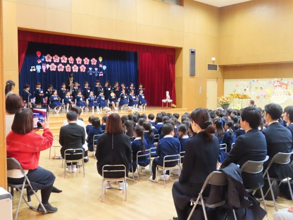 ホールに集まって、みんなでお祝いをしました