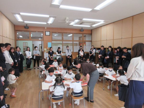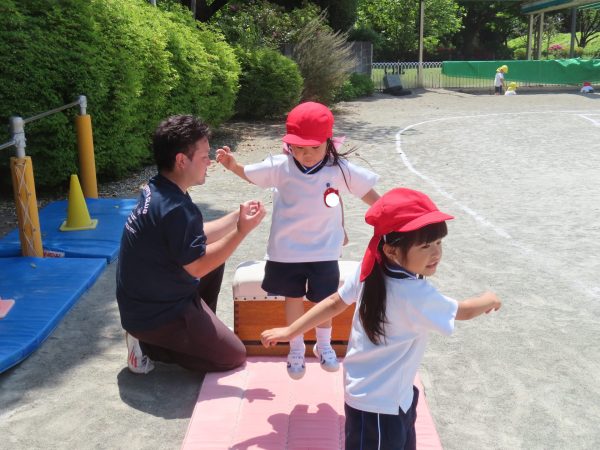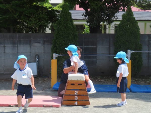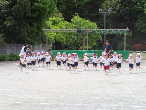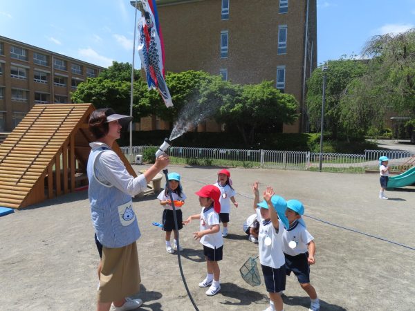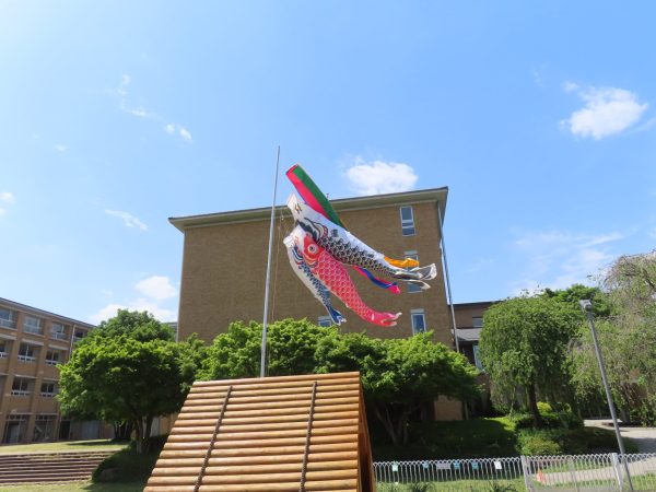 園庭では、こいのぼりが元気よく泳ぎ始めました