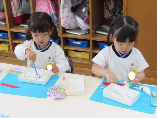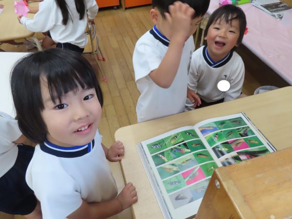 幼稚園で見つけた虫を